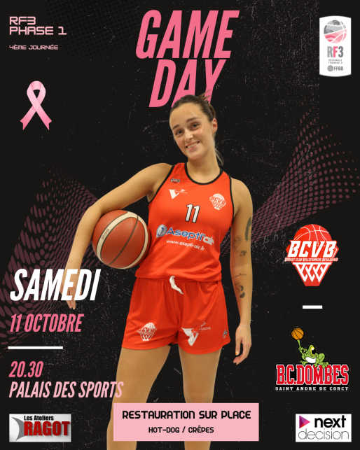 Sous le thème d’Octobre Rose, nous vous invitons à venir nombreux soutenir nos joueuses à remporter leur 3e victoire et à montrer votre solidarité dans la lutte contre le cancer du sein.